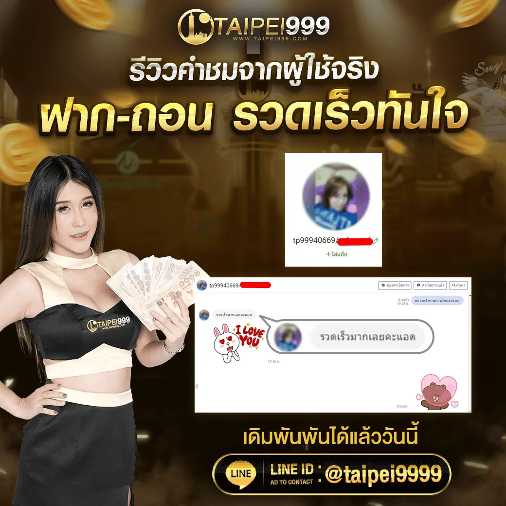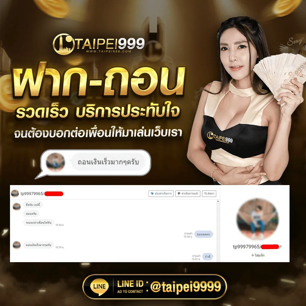 ยินดีต้อนรับเข้าสู่เว็บไซต์ คาสิโนออนไลน์ TAIPEI999.COM ไทเป999 ที่ TAIPEI999.COM เราคือเว็บที่มี คาสิโนออนไลน์ ที่ครบครันที่สุด บาคาร่า บาคาร่าออนไลน์ ภาพสุดสวย รูเล็ต ไฮโล เสือมังกร กำถั่ว เราแบ่งแยกชัดเจนระหว่างเกมเล่นบาคาร่า กับ โซนเกมที่เป็น สล็อตออนไลน์ ยิงปลา เพื่อให้ง่ายกับการมองเห็นของลูกค้า อีกทั้งระบบเว็บเราเป็นระบบที่ฝาก-ถอน AUTO 10-30 วินาทีทำให้ลูกค้าไม่ต้องอดใจนาน และทั้งยังเวลาเล่นเกมคาสิโน ไม่ต้องโยกเงินน่าเบื่อแบบเว็บอื่น หมดปัญหาเงินหาย หรือ ค่ายเกมส์ปิดโยกเงินออกไม่ได้ กดเข้าเล่นสามารถเล่นได้ทันที และ ตอนถอนก็ถอนเงินได้ทันที ไม่ต้องมีเทินโอเวอร์เลย หากท่านมีข้อสงสัยหรือต้องการคำปรึกษากรุณา ติดต่อสอบถาม CALL CENTER ได้ตลอด 24 ชั่วโมง. หรือ ทักแชทไลน์มาได้เลย LINE ID : @taipei999 แอดมินสาวสวยรออยู่นะคะ